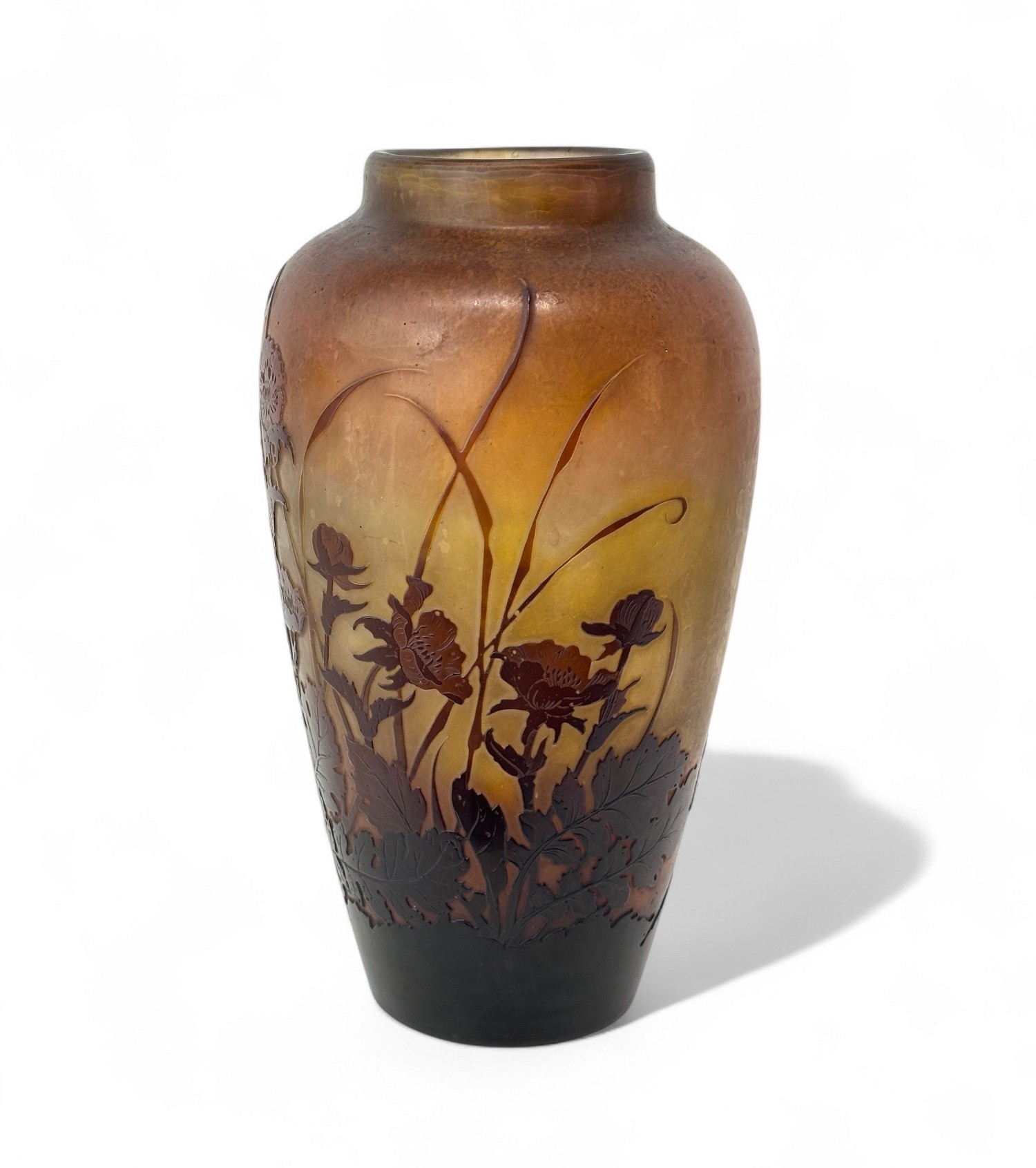 The shape of the object is thought of as an organic support for the decoration, and not as a simple container. The decor is often in slight relief, embracing curved volumes. There is a constant dialogue between surface and motif, typical of Art Nouveau.