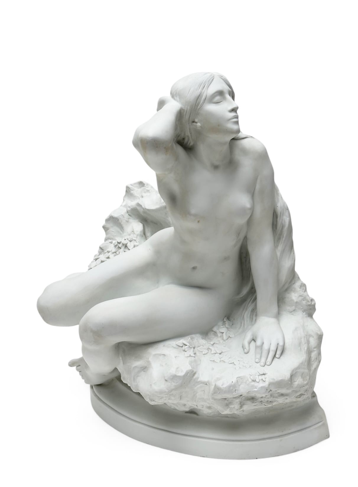After André Paul Arthur MASSOULLE (1851-1901) Female nude on the rocks Cookie Signed on the side 49 x 45 x 26 cm approx. Chips