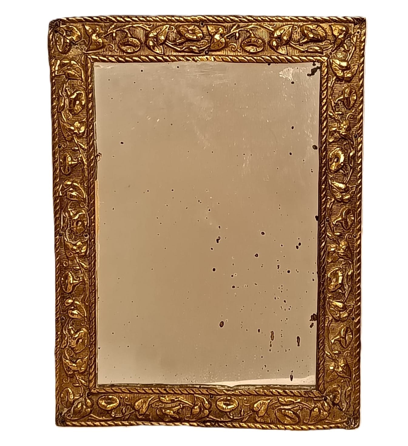 Brass mirror with repoussé decoration of a stylized flower frame Mercury glass 18th century work 37.5 x 28 cm