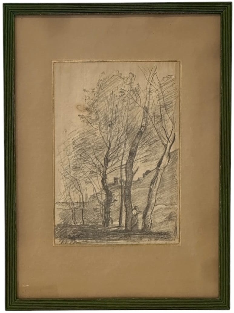 COROT Jean-Baptiste Camille (1796-1875) Reading under the trees, 1874 Black lithograph (stains and small hole) Lower left in the plate: COROT 18x33 cm Delteil 33 Expert : Cabinet Maket