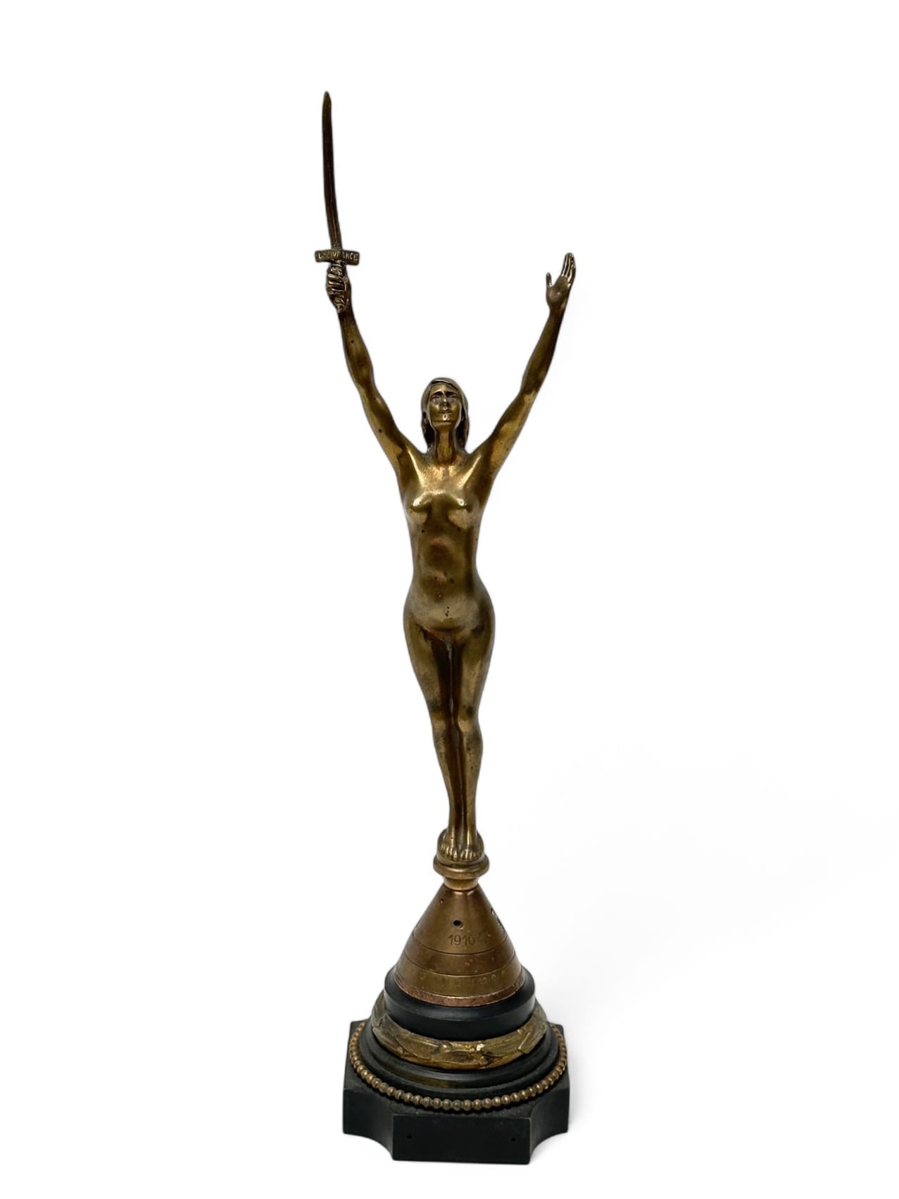 Émile-Oscar GUILLAUME (1867-1942) Deliverance Bronze with golden patina, mounted on a mechanism resting on a black marble base. Marked "LWMZdr2" and dated "1916". Height: 40.5 cm