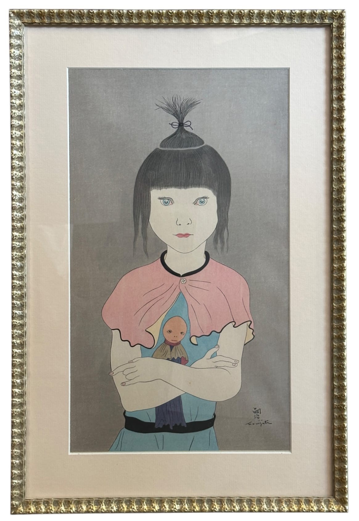 FOUJITA Léonard Tsuguharu (1886-1968) Girl with doll Woodcut in colors Signed lower right in the plate 39 x 22.5 cm (view)
