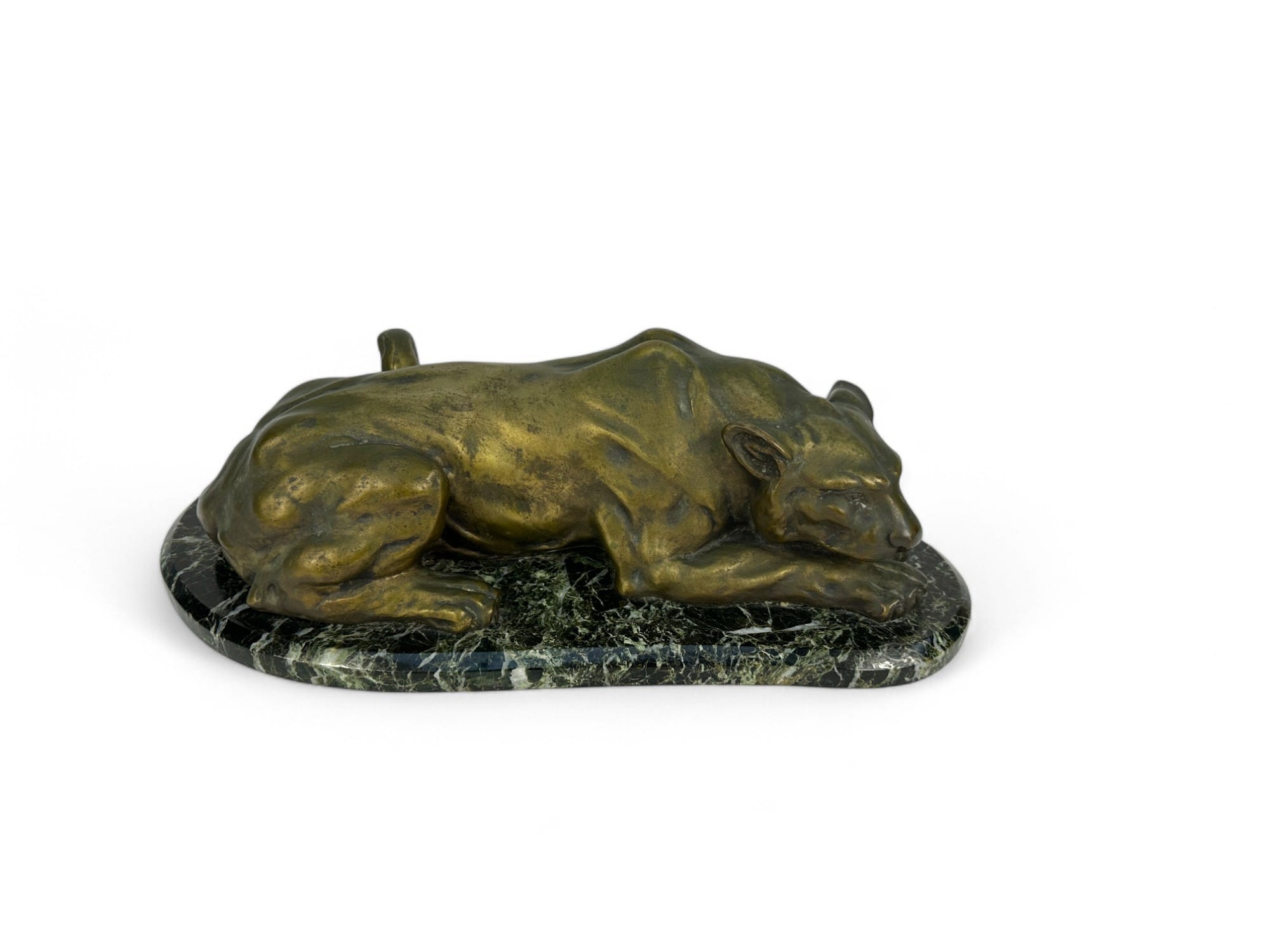 Henri PAYEN (1894-1933) Panther lying in wait Patinated bronze on a sea-green marble base Signed under the tail "H Payen édition". 13.5 x 42 x 18 cm