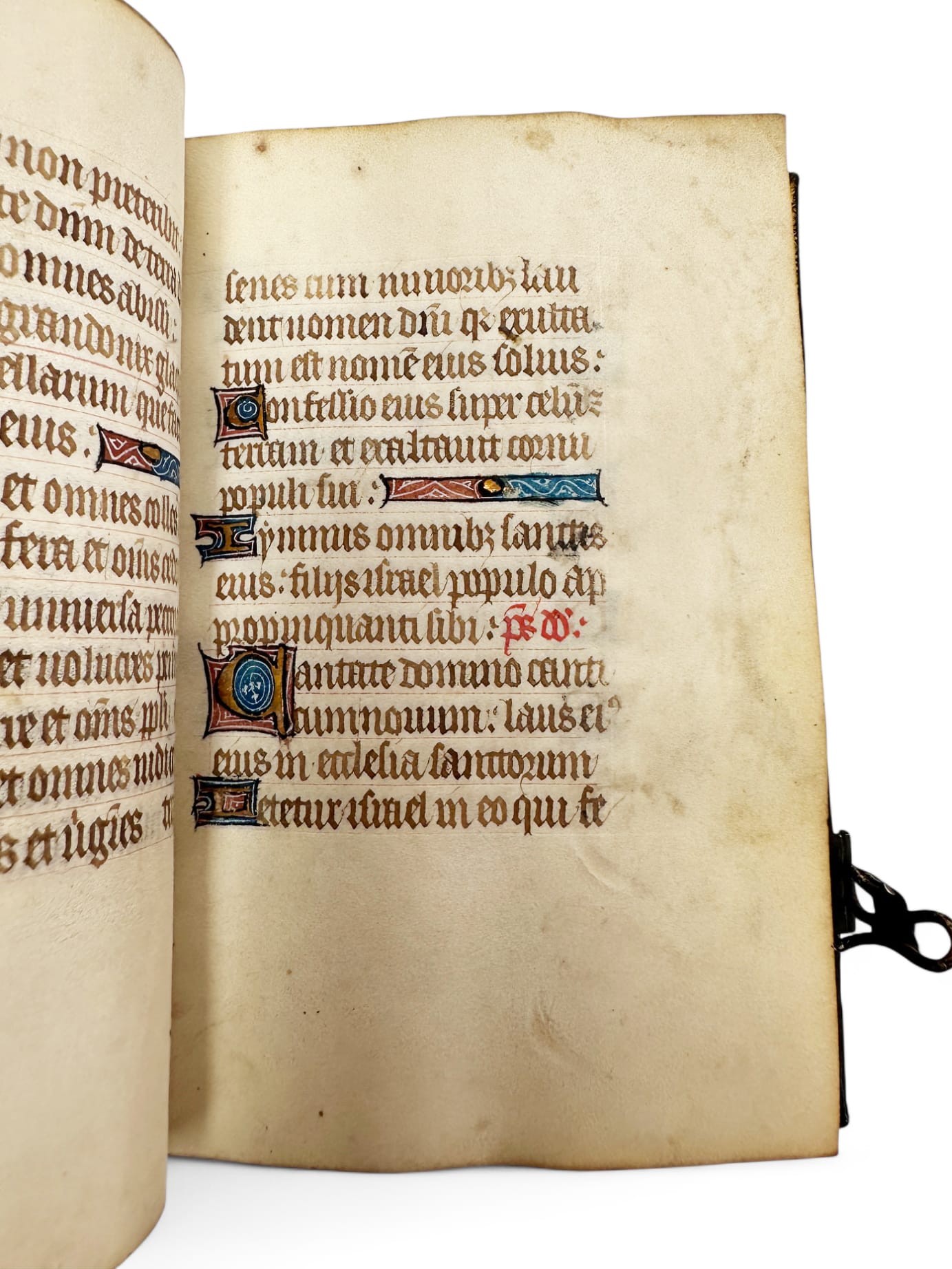 Latin and French illuminated manuscript Book of Hours on parchment, 15th century.