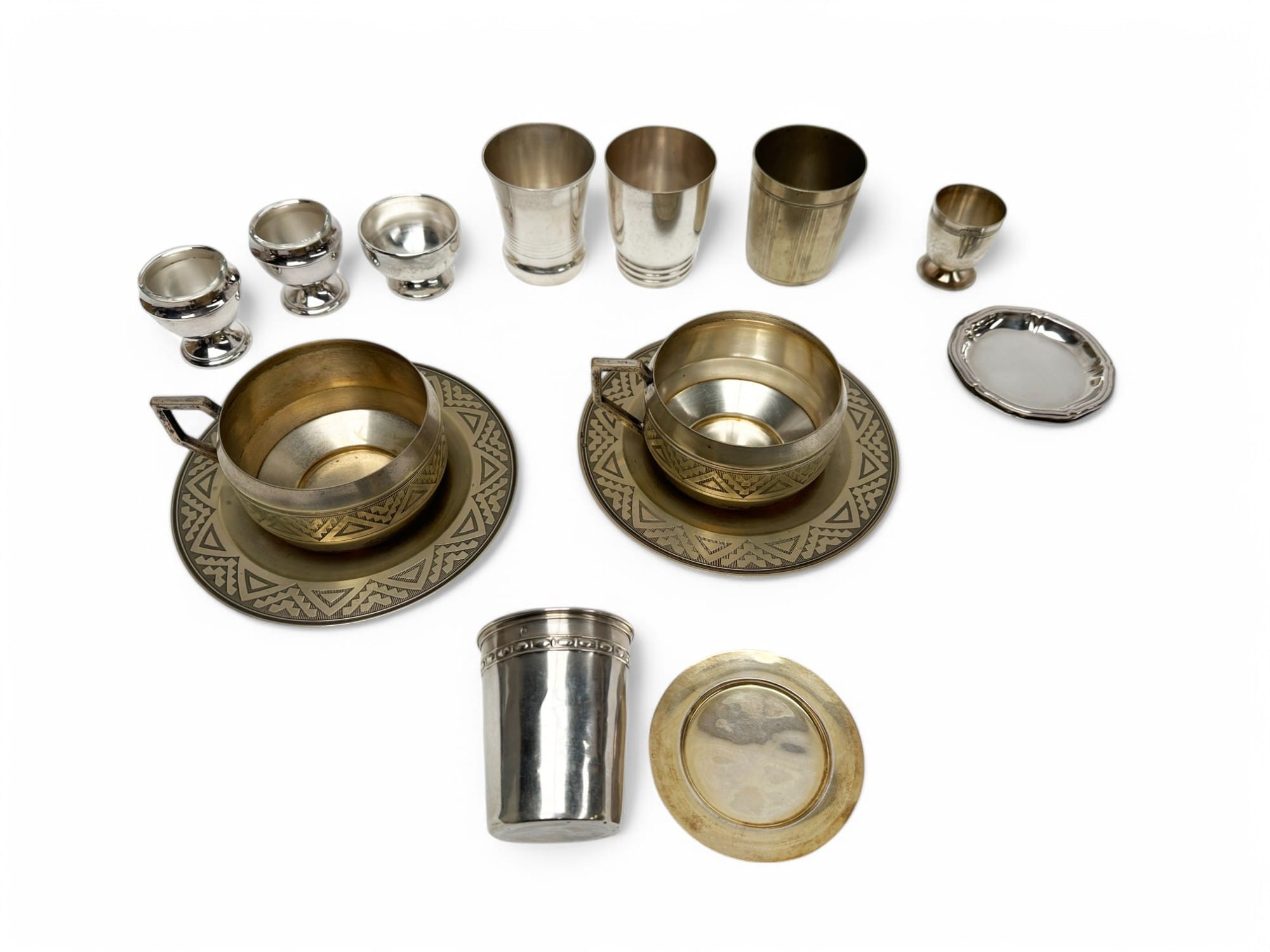 Timbale and cup in silver 925°/00 Total weight: 70.2 g Includes 2 cups and saucers, 3 timbales, 4 egg cups, 2 silver-plated dishes Sold by designation