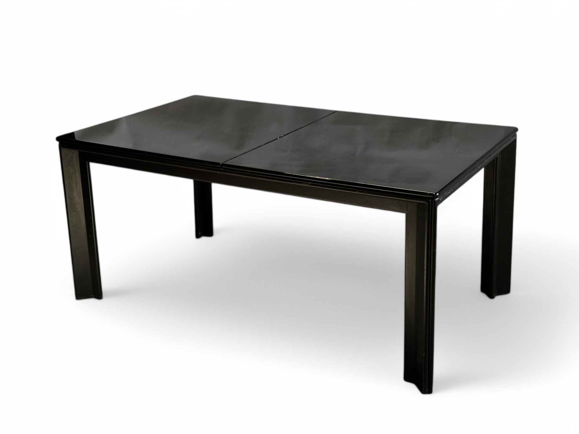 AFRA (1937-2011) & TOBIA (1935) SCARPA Mou model extendable dining table, circa 1974, with rectangular top opening in the center to accommodate extension leaves, set on four black lacquered wood corner legs (Scratches, chips, restorations) Molteni edition 72.5 x 95 x 160 cm (closed) x 258 cm (open) Expert : Romain Coulet