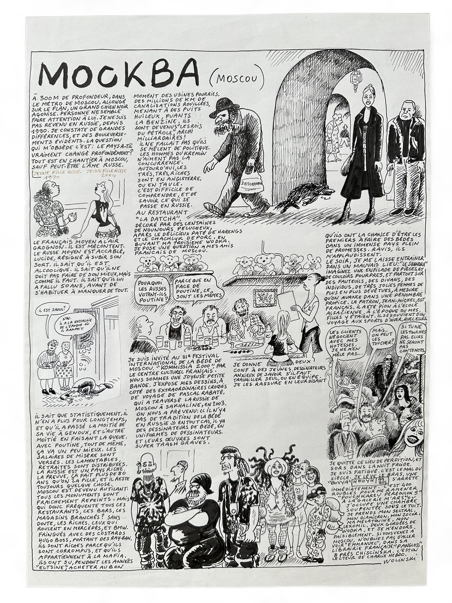 Georges WOLINSKI (1934-2015) Moscow Indian ink drawing on paper Signed lower right On the back of the frame, stamped by copyright Saber in Istanbul 41 x 29.7 cm A tiny tear on the side, a repentance Provenance: purchased at the "Wolinski à Istanbul" exhibition, March 31-May 2, 2010