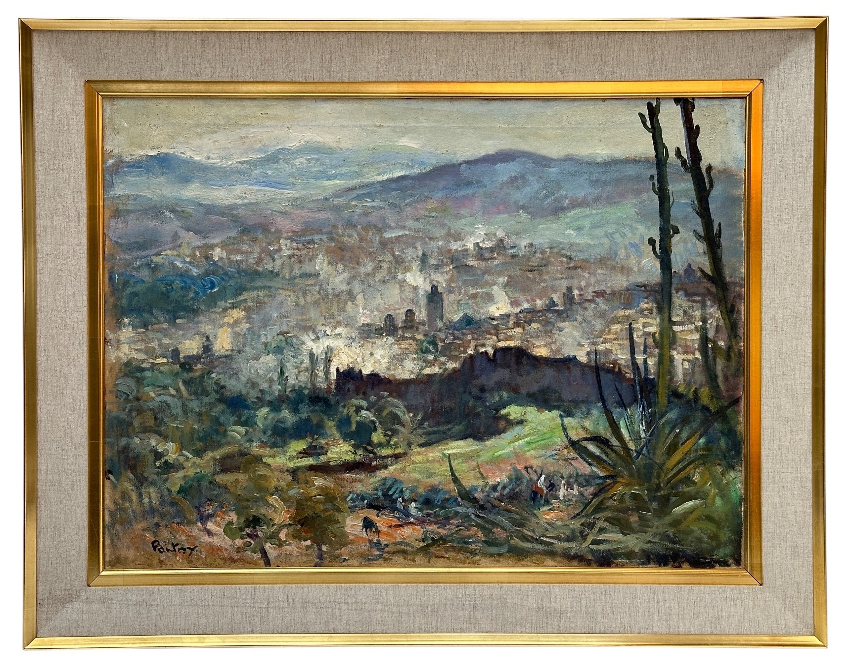 Henri PONTOY (1888-1968) Marrakech against an Atlas backdrop, Oil on canvas Signed lower left 54 x 73 cm Faded