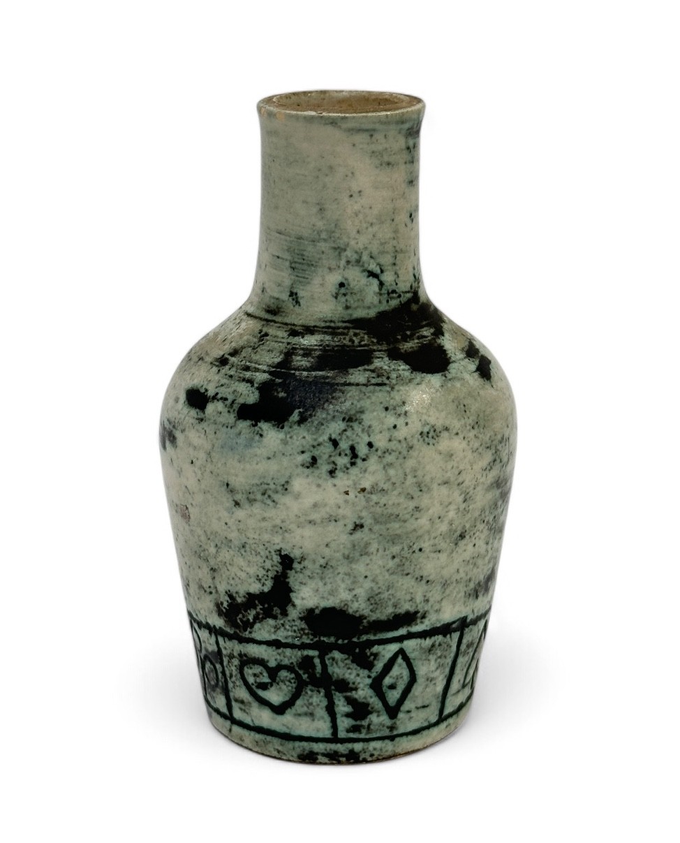 Jacques BLIN (1920-1995) Baluster vase, circa 1955. Green and black glazed ceramic proof with frieze decoration Signed J.Blin on reverse. H : 12 cm Expert : Romain Coulet
