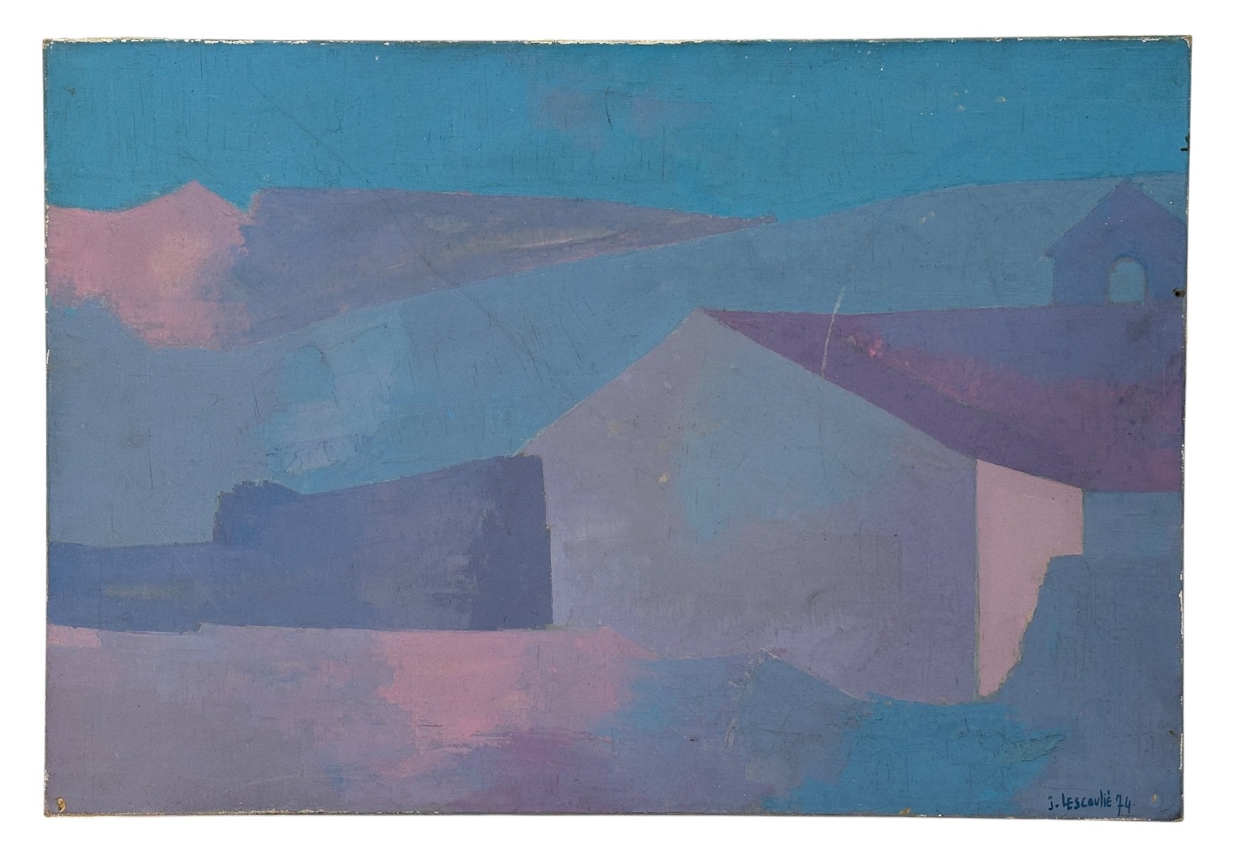Jacques LESCOULIÉ (born 1935) "The silent Ardèche Oil on canvas Signed and dated 74 lower right Titled and dated on the back 50 x 73 cm Traces of rubbing