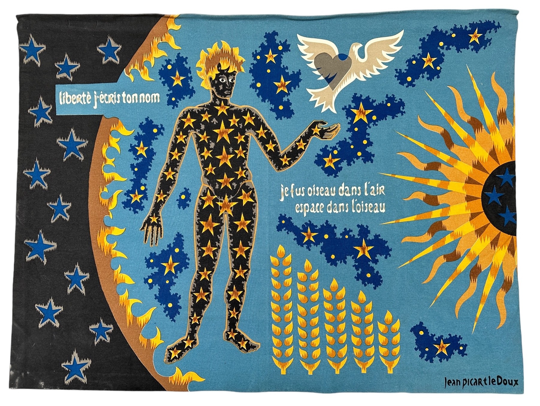 Jean PICART LEDOUX (1902-1982) and the publishers LA DEMEURE and M. SERIGRAPHIE in Aubusson "Tribute to Paul ELUARD Polychrome screen-printed wall hanging, numbered 184/300 Bolduc signed 120 x 160 cm