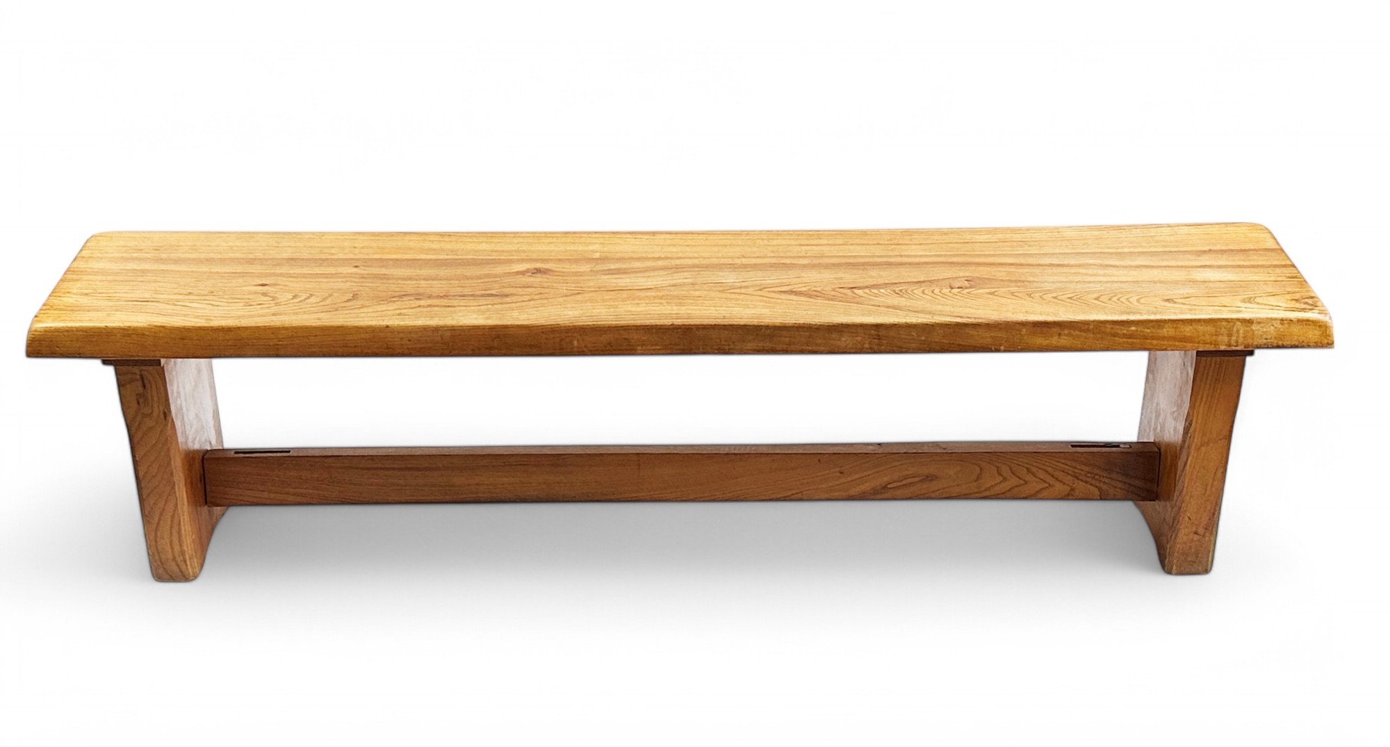 Pierre CHAPO (1927-1986) Model S14B bench, with rectangular seat on two pillars joined by a brace at the bottom. H. 43 cm. - L.: 173 cm. - D. : 35 cm. (Wear, scratches, discoloration) Bibliography: - Pierre Chapo exhibition catalog, Magen H Gallery, 2017, similar model reproduced p. 192. Expert : Romain Coulet