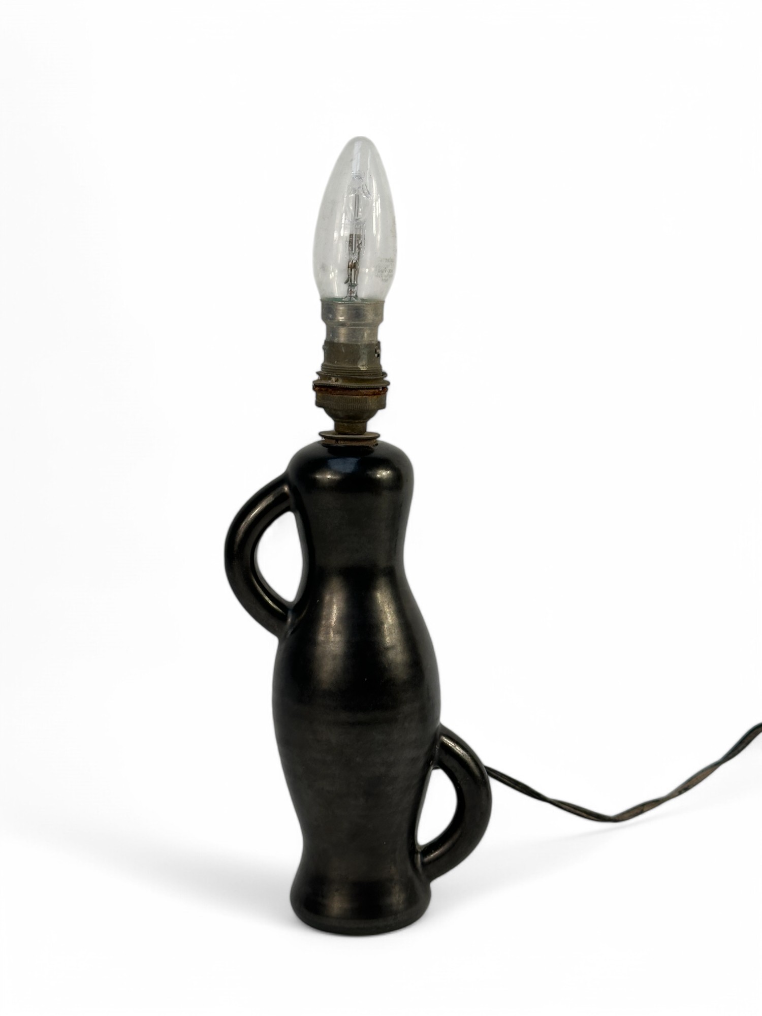 Pol CHAMBOST (1906-1983) Lamp base model 1036A, in black glazed ceramic, with two asymmetrical handles Signed on the underside "Poterie Pol Chambost / 1036A / Made in France". H: 21 cm (excluding electrical system)