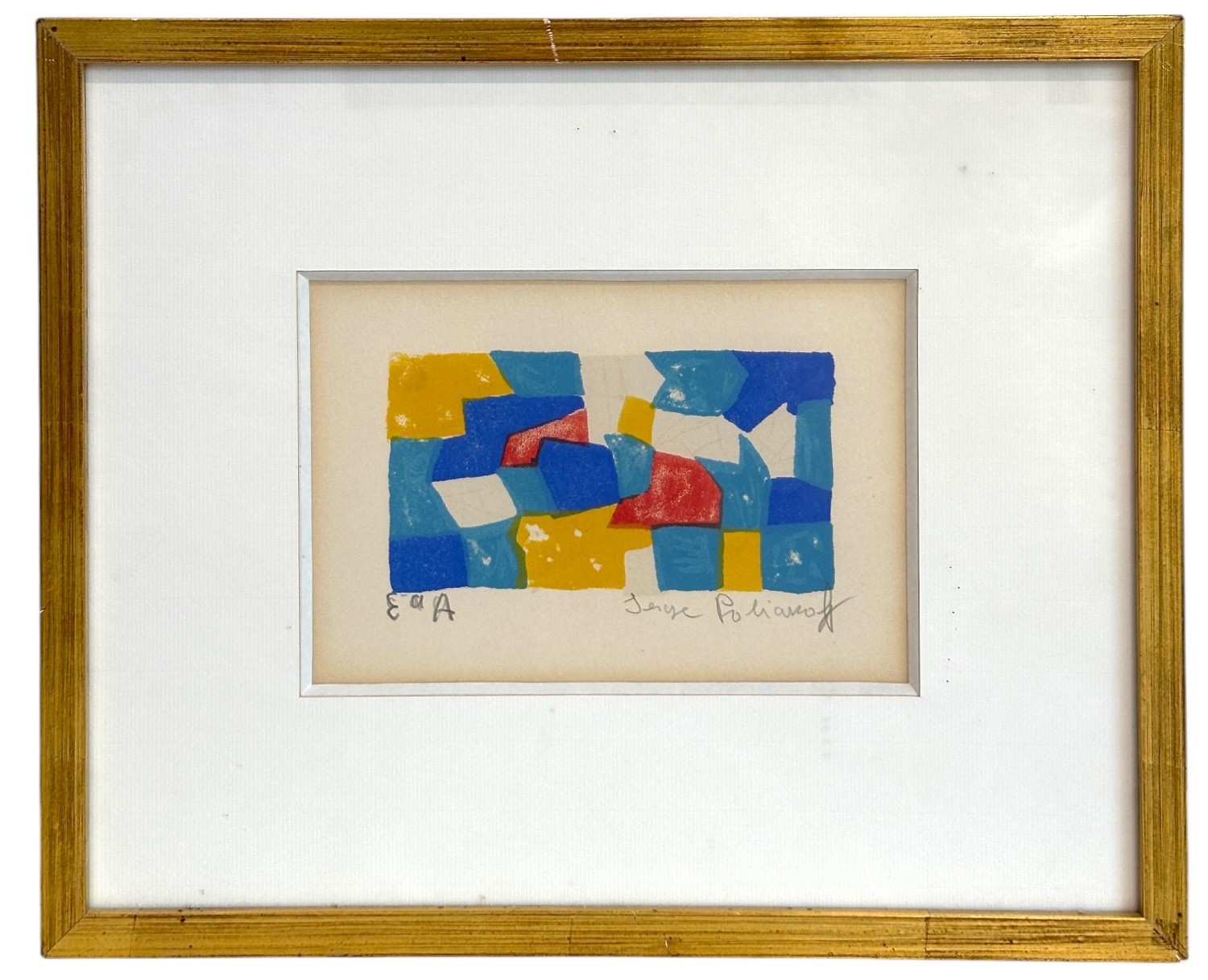Serge POLIAKOFF (1900-1969) Abstract composition Color lithograph, artist's proof Signed in pencil lower right and justified EA lower left Gallery label on back of frame 13.5 x 20 cm (on view)
