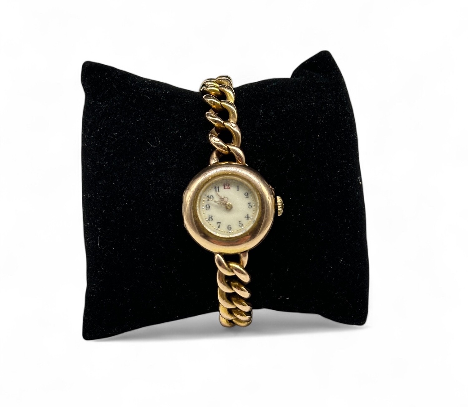 Small watch in yellow gold (750) with large-mesh yellow gold (750) bracelet Circular dial with Arabic numerals and railway on a white background Clasp with clip and safety chain Case back engraved with a numeral; on the reverse, Société Générale SG hallmark and numbering 26967 Inscription on dust cover "N°18660 / Giteau / Elève de Breguet / Ancien horloger Bté du Roi / Palais Royal 140 / Paris". Diameter: 24 mm Gross weight: 25.7 grams