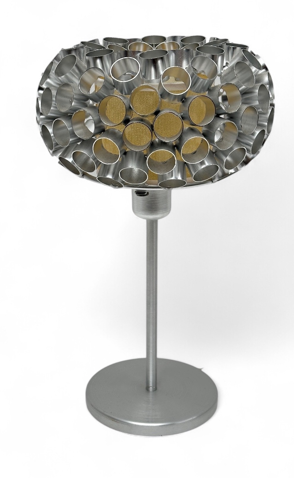Futuristic metal "space age" style lamp, circular base, cylindrical honeycomb reflectors Height: 42 cm