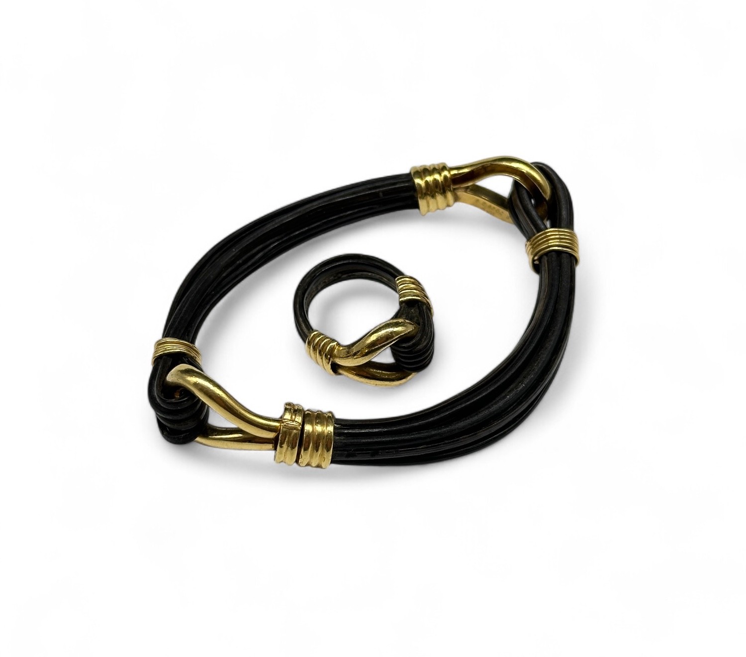 VAN CLEEF & ARPELS Half-set in 18k (750e) gold, consisting of a bracelet and a ring, with buckle decoration. Circa 1960/70. Signed VCA, numbered. Gross weight: 29.40 g. - Finger circumference: 52 Expert: Drew Battaglia for Sancy expertise