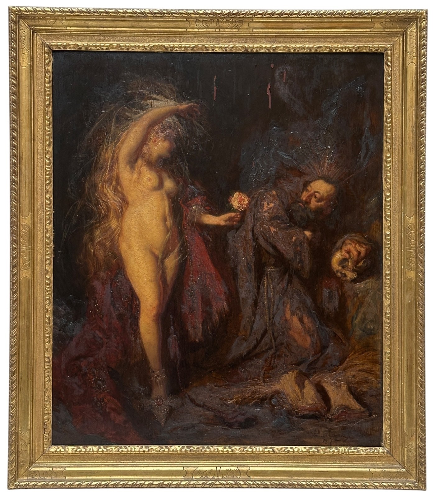 Willem II LINNIG Junior (1842-1890) The Temptation of Saint Anthony Oil on panel Signed and dated 1887 lower right 73.5 x 61.5 cm Minor loss of paint Bibliography: Paul André, Le Peintre Willem Linnig, Junior, éditions de la Belgique artistique et littéraire, Bruxelles, 1907, illustrated p.26